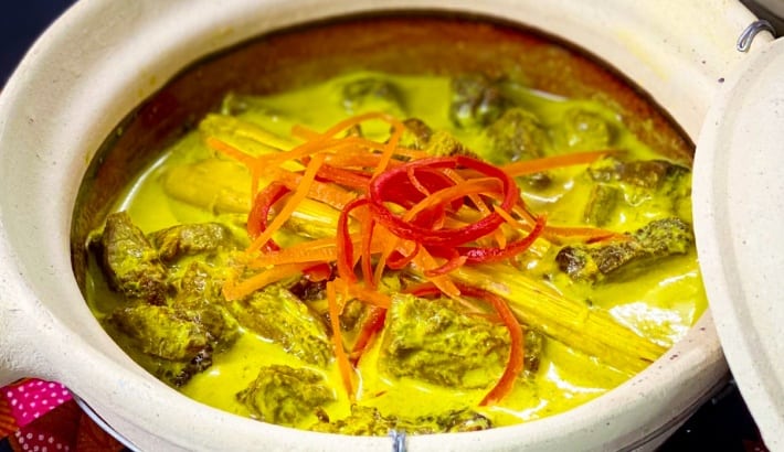TASTE OF KAMPUNG ‘Singgah’ and taste our authentic ‘masak lomak cili api’ Famous dish smoked beef braised with spicy coconut milk served with white rice, ulam & sambal. RM18.00 nett
