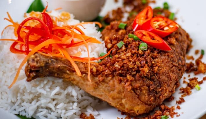 TASTE OF KAMPUNG Unique fried chicken served with white rice, ulam & sambal. RM18.00 nett